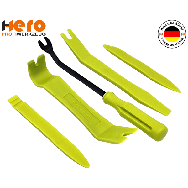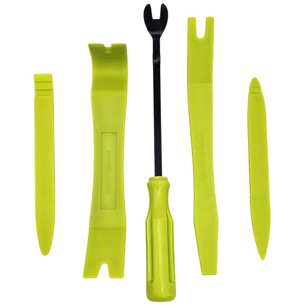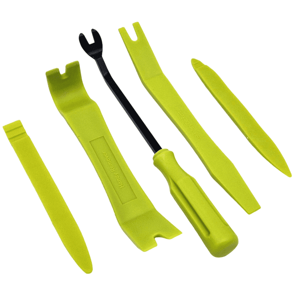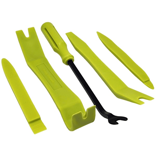 Die elastischen Nylon-Werkzeuge sind robust genug, um Verkleidungs-Platten auszuhebeln und Clips zu lösen.