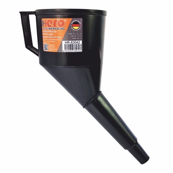 Ein abgewinkelter Trichter vereinfacht das Befüllen mit Motoröl, Scheibenwasser, Benzin, etc.