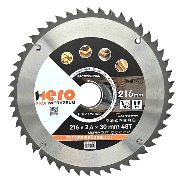 Premium Hartmetall Kreissägeblatt Ø 216 x 30 mm inkl. Reduzierring Ø 30 auf 20 mm 48 Zähne