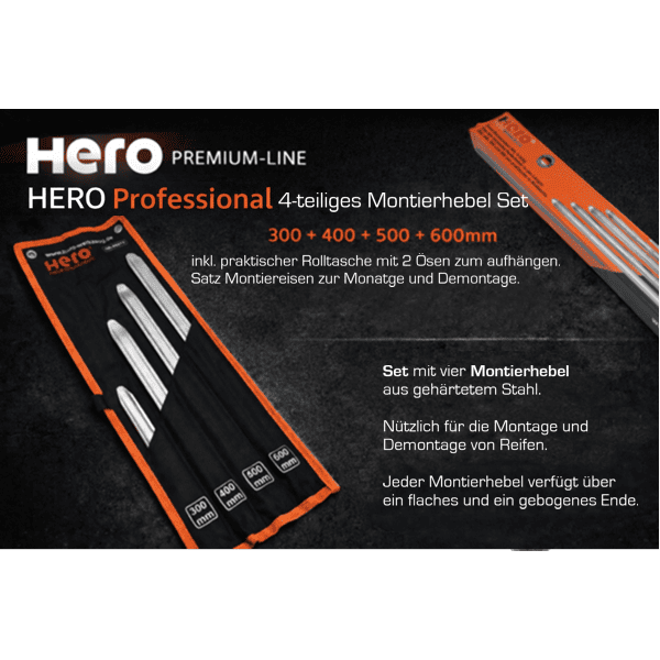 HERO Professional 4-teiliges Montierhebel Set 300 / 400 / 500 / 600 mm